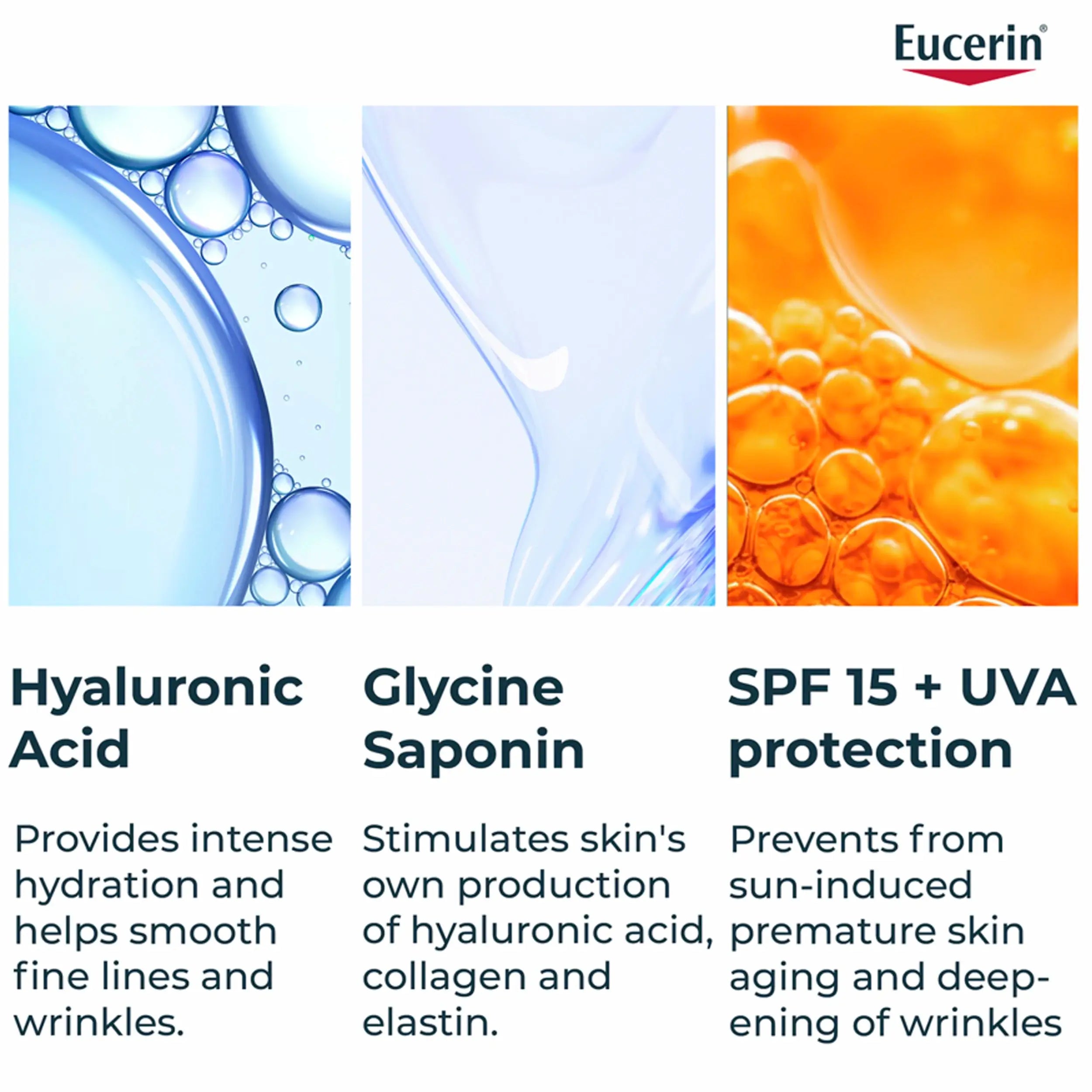 Eucerin Hyaluron-Filler 3x Effect Day Cream Dry Skin is indicated in the daily anti-wrinkle treatment while protects the skin from the sun's harmful effects - SPF 15 and UVA and UVB protection.