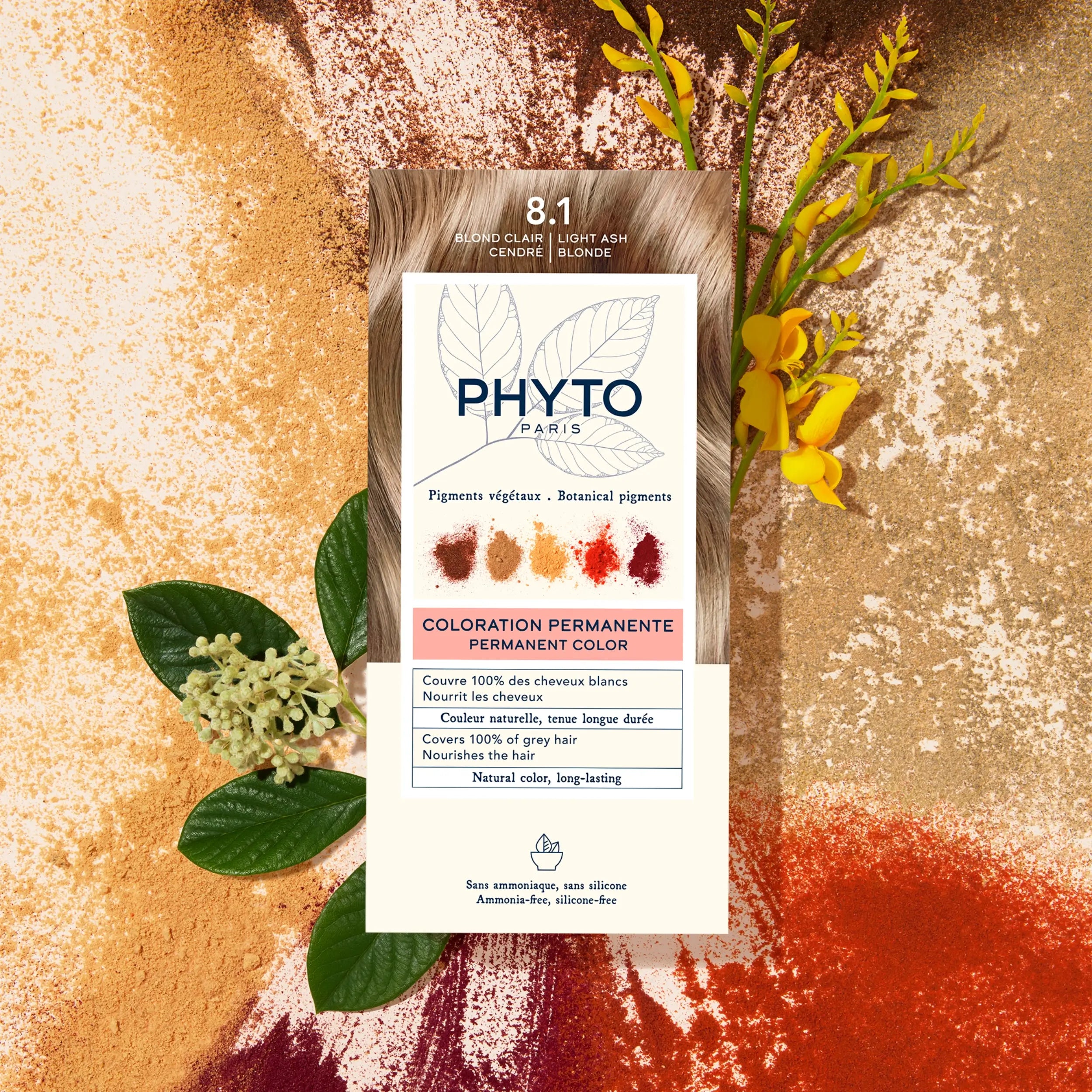 Phyto Permanent Hair Color 8.1 Light Ash Blond a natural and long lasting color with luminous reflections, covering 100% of white hair and respecting the scalp, are the principles of Phyto Color, a coloration of original tones exclusively formulated from vegetable pigments.