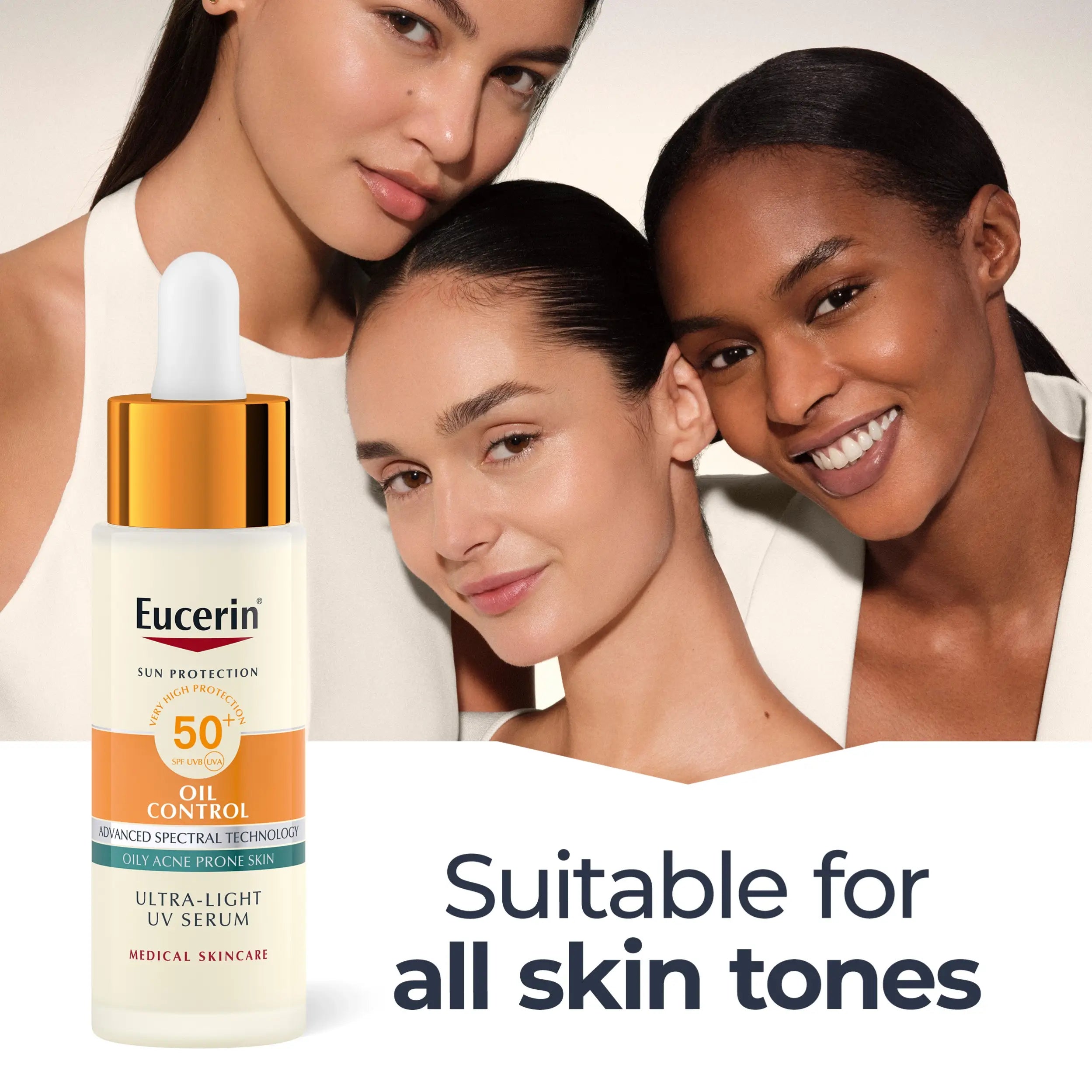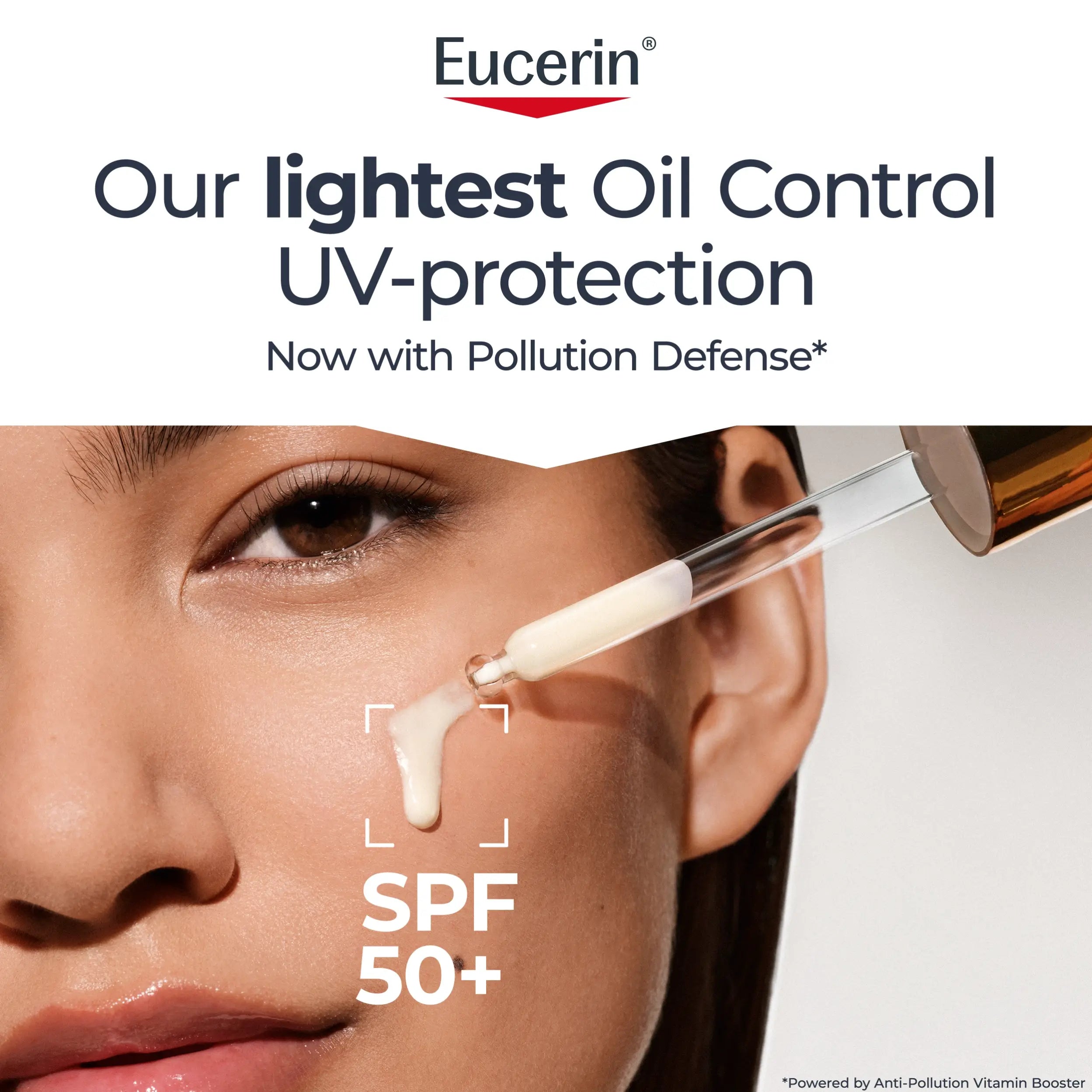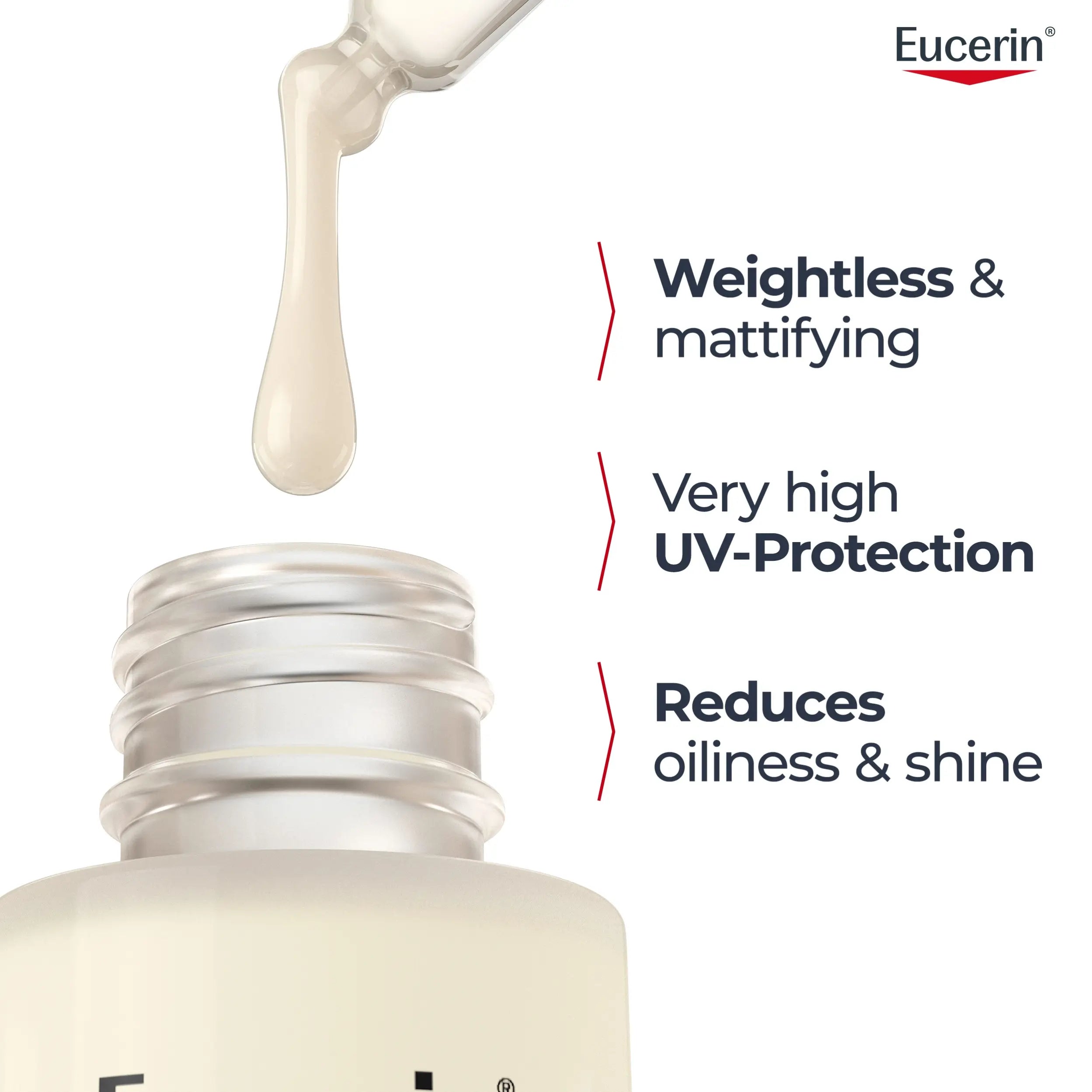 Eucerin Sun Protection Oil Control UV Serum SPF50+ is a lightweight, daily sun protection serum designed for oily and combination skin. It offers high UVA/UVB protection while visibly reducing excess shine and defending the skin against environmental pollution. Its fast-absorbing, non-greasy formula leaves the skin fresh, matte, and comfortable throughout the day, making it ideal for everyday use. Enjoy sun protection and a matte complexion in one simple step.