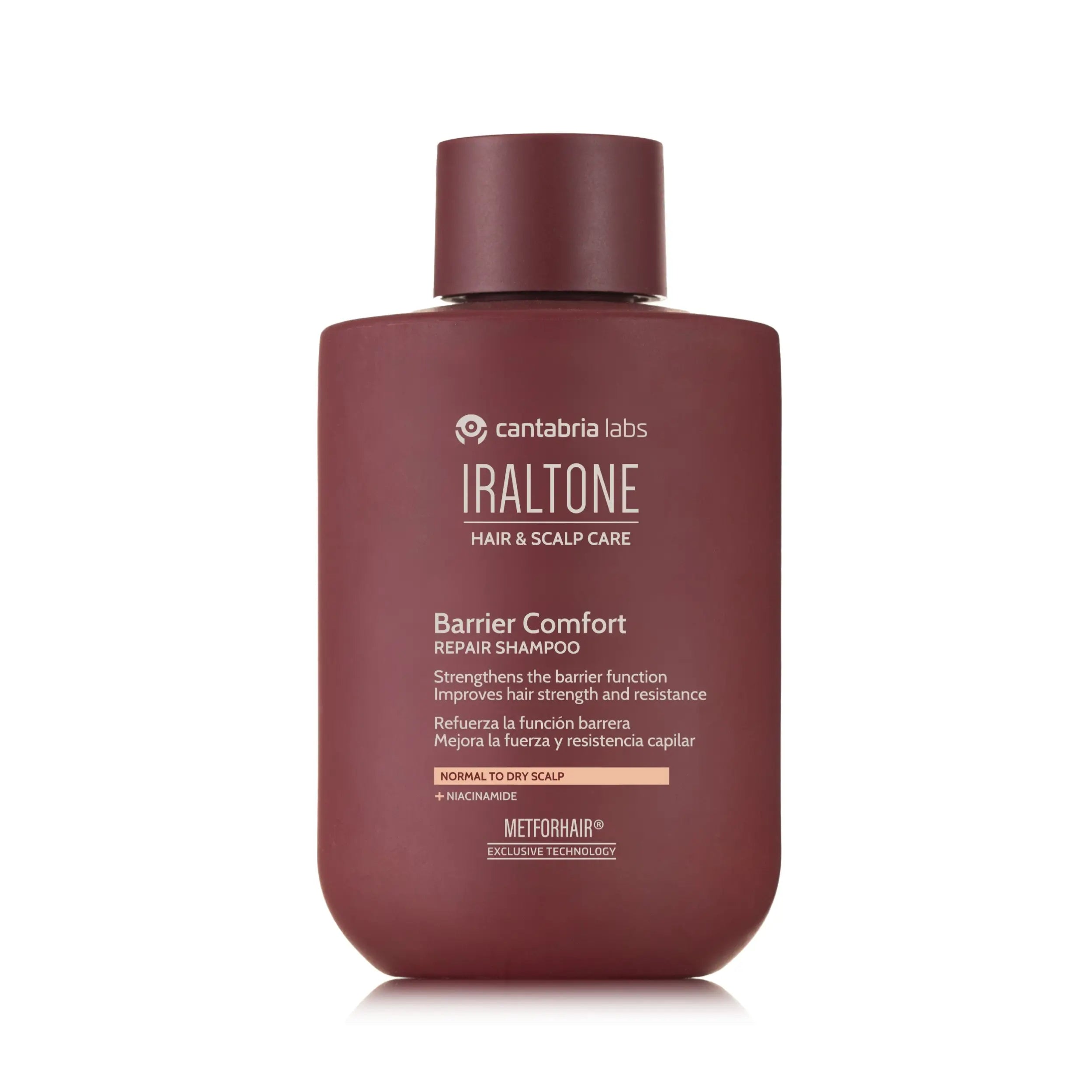 Iraltone Care Barrier Comfort Repair Shampoo is specially formulated for fragile hair and sensitive scalps. Strengthen your scalp’s natural barrier and boost hair resilience with MetforHair® technology (Resveratrol, Galega) while niacinamide hydrates and soothes. This gentle yet effective shampoo protects, repairs, and restores your hair for lasting health and shine. Ideal for daily use on weak, brittle, or sensitive hair.
