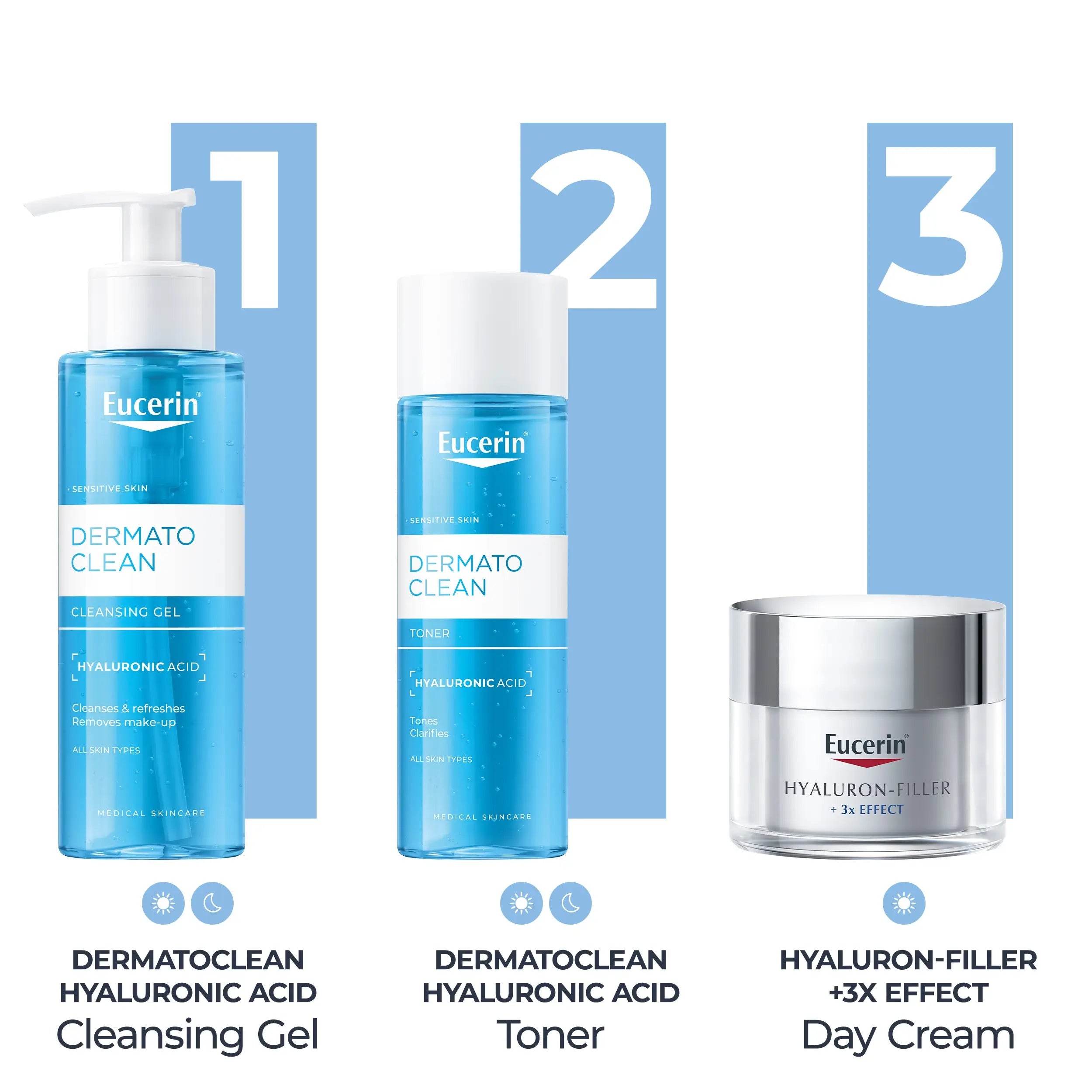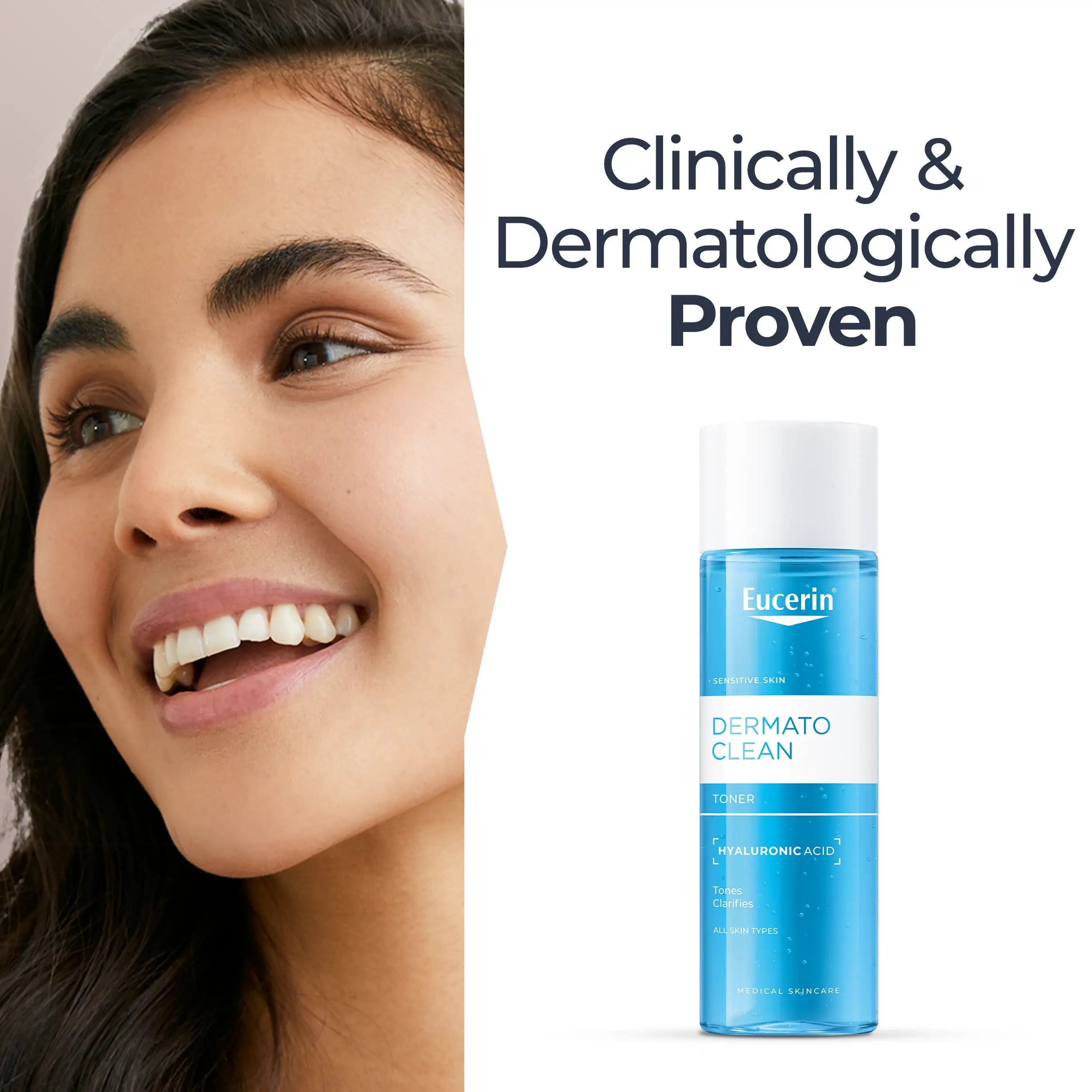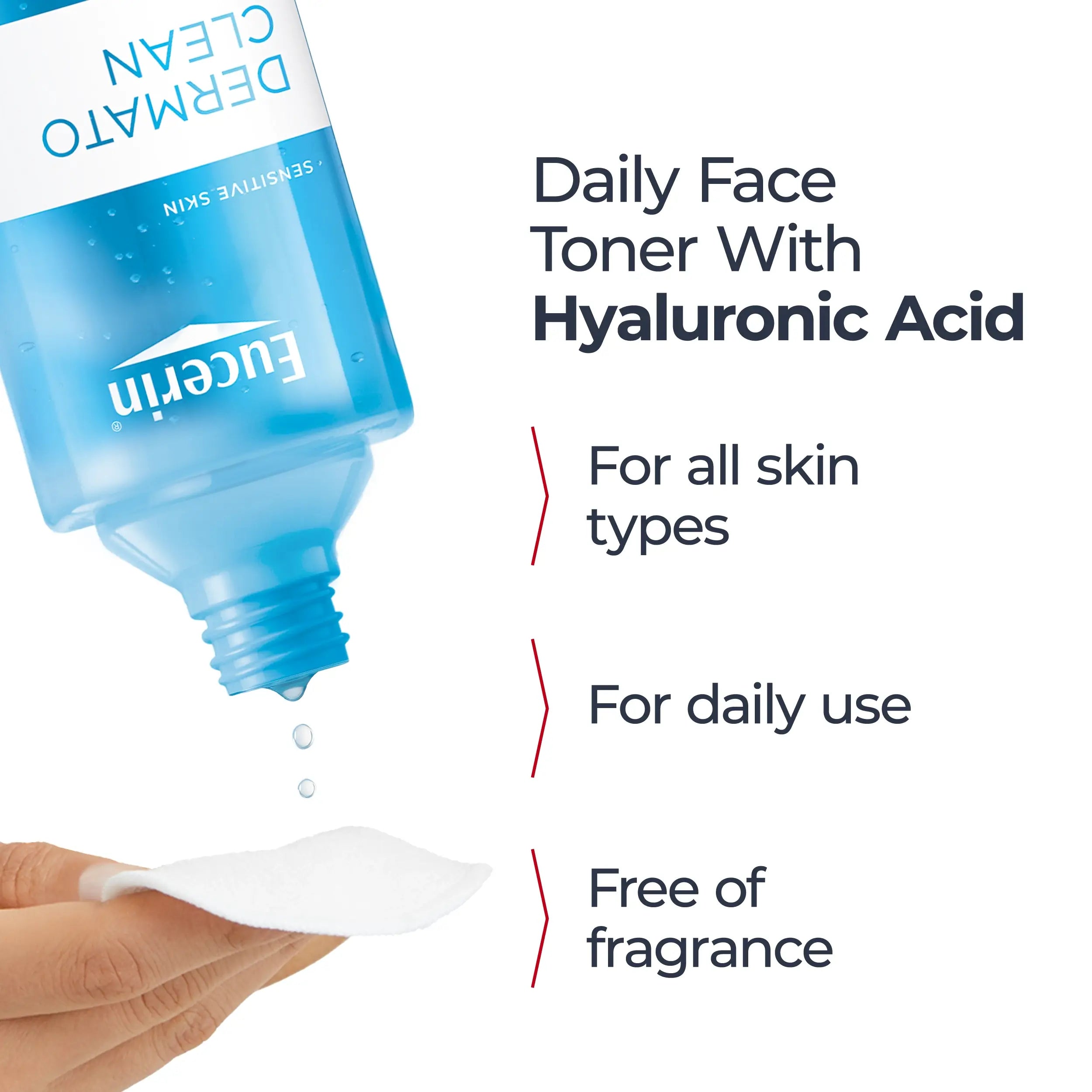 Eucerin DermatoCLEAN Hyaluronic Toner tones and refreshes gently and effectively. Removes residue from cleaning products and rebalances the skin's natural pH. Prepares the skin to receive daily care. Enriched with moisturizing active ingredients (does not dry the skin).